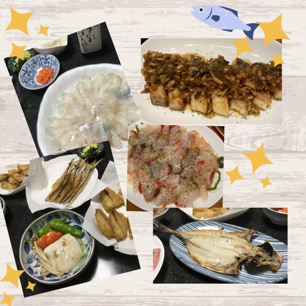 魚釣りが趣味なので、自分が釣ってきた魚を料理してくれます。ある日のお料理です↓↓↓↓