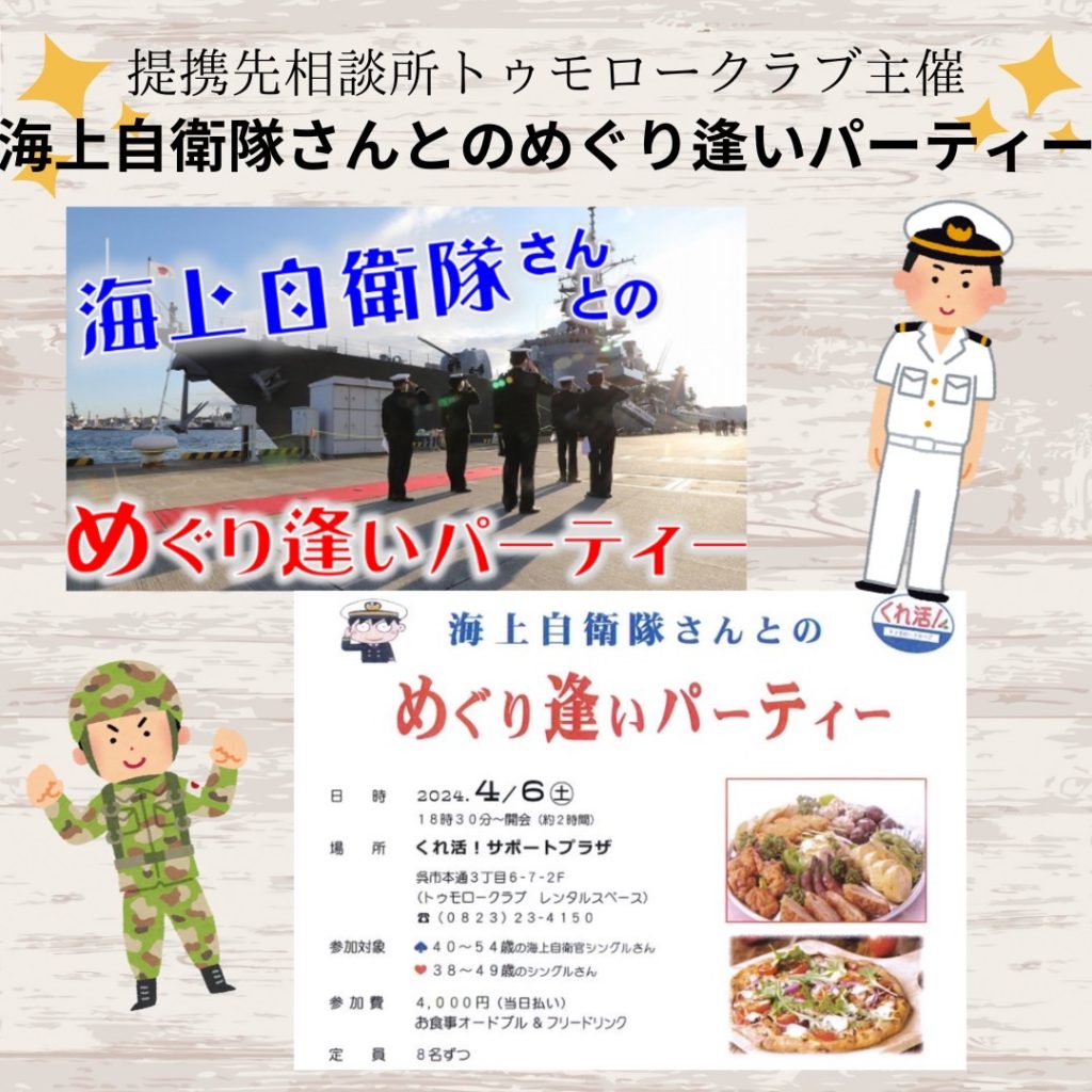 本日は、提携先相談所トゥモロークラブ主催婚活イベント「海上自衛隊さんとのめぐり逢いパーティー」のお知らせです。