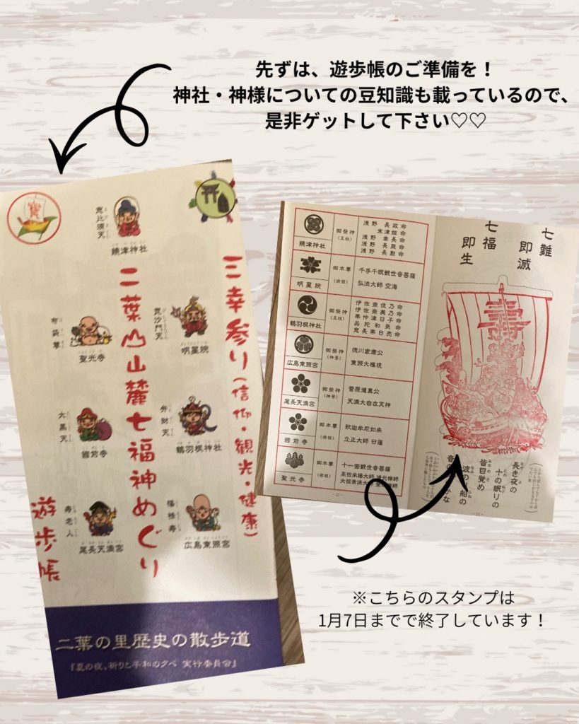 各所でスタンプを集められる「二葉山山麓七福神めぐり遊歩帳」も用意されています。