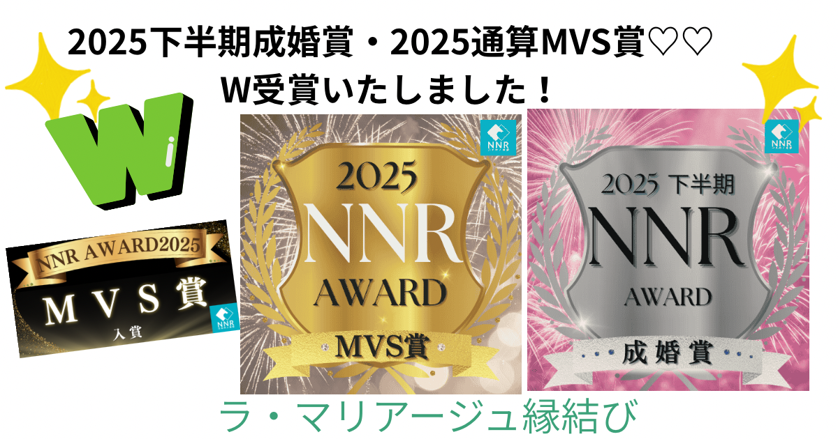 このたび、NNR(日本仲人連盟) より2025年下半期成婚賞・2025年通算MVS賞 をW受賞いたしました🙌🏻✨