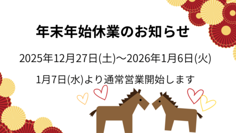 年始休業のお知らせです♪今年もあとわずかとなりました♡ 皆さま、良いお年をお迎えくださいね♪